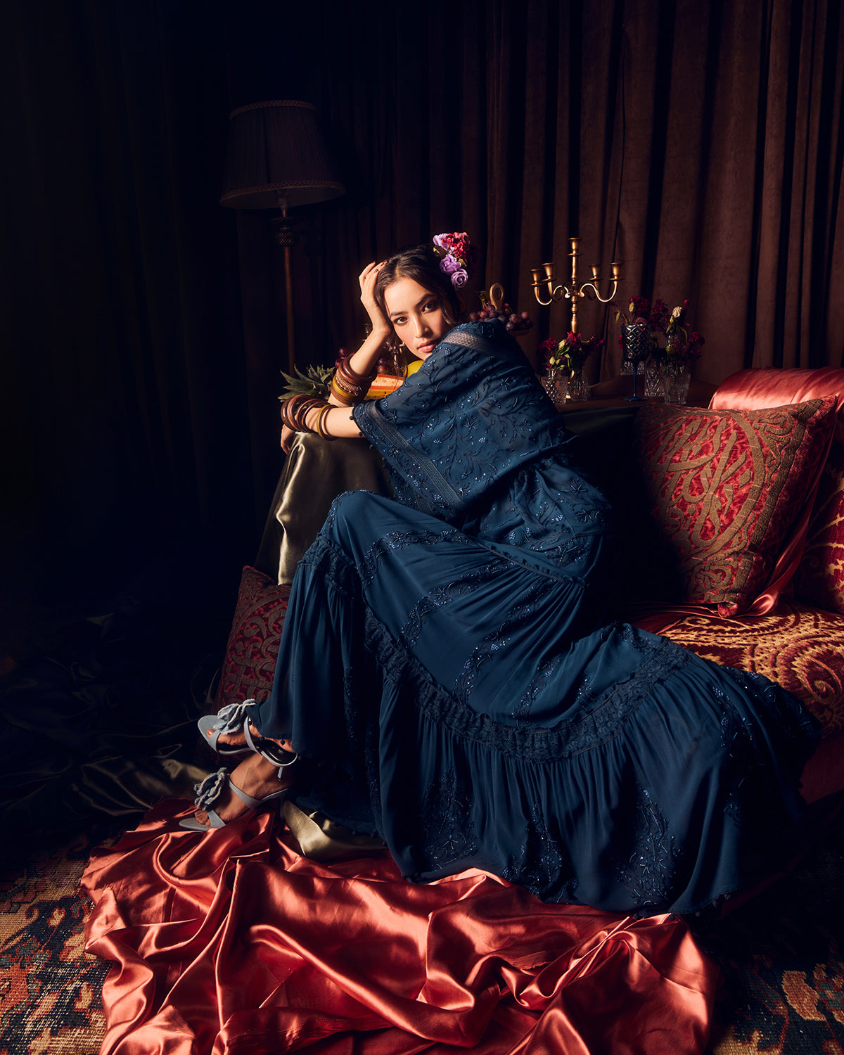 This artisanal top celebrates the gentle curves and organic forms of Art Nouveau with its statement Aari embroidery and beading work, crafted meticulously by our in-house artisans. Details include a V-shaped neck and an adjustable self-tie belt for a relaxed fit.