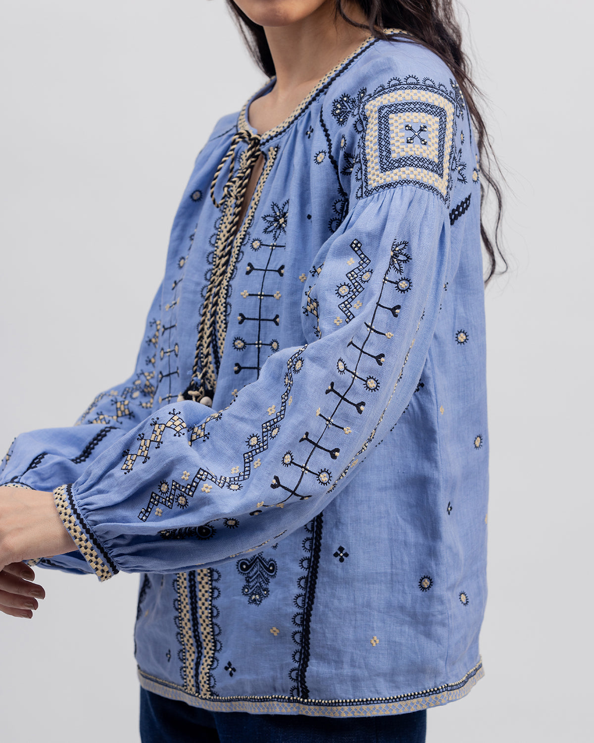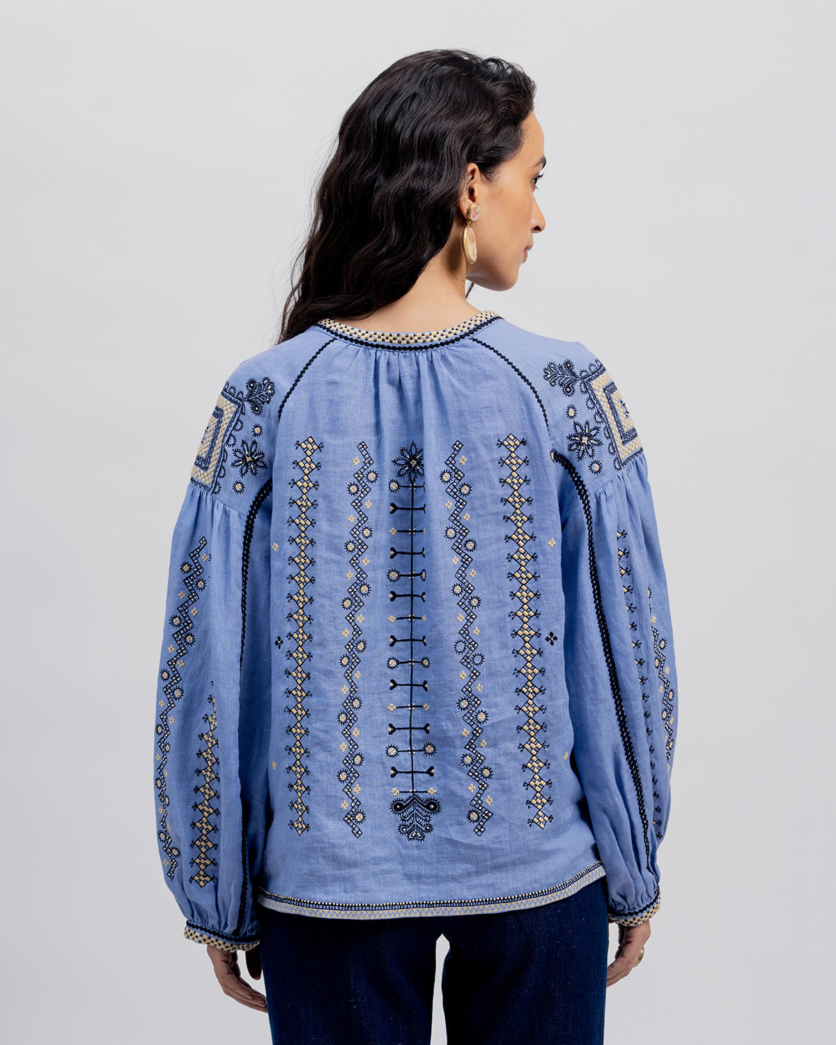 Our embroidered peasant blouse offers a contemporary take on the New Romantic style, with contrasting black and cream embroidery, dainty hand beading, and statement tassels. Designed for a relaxed fit, this breezy artisanal top makes for the perfect addition to your summer staples.