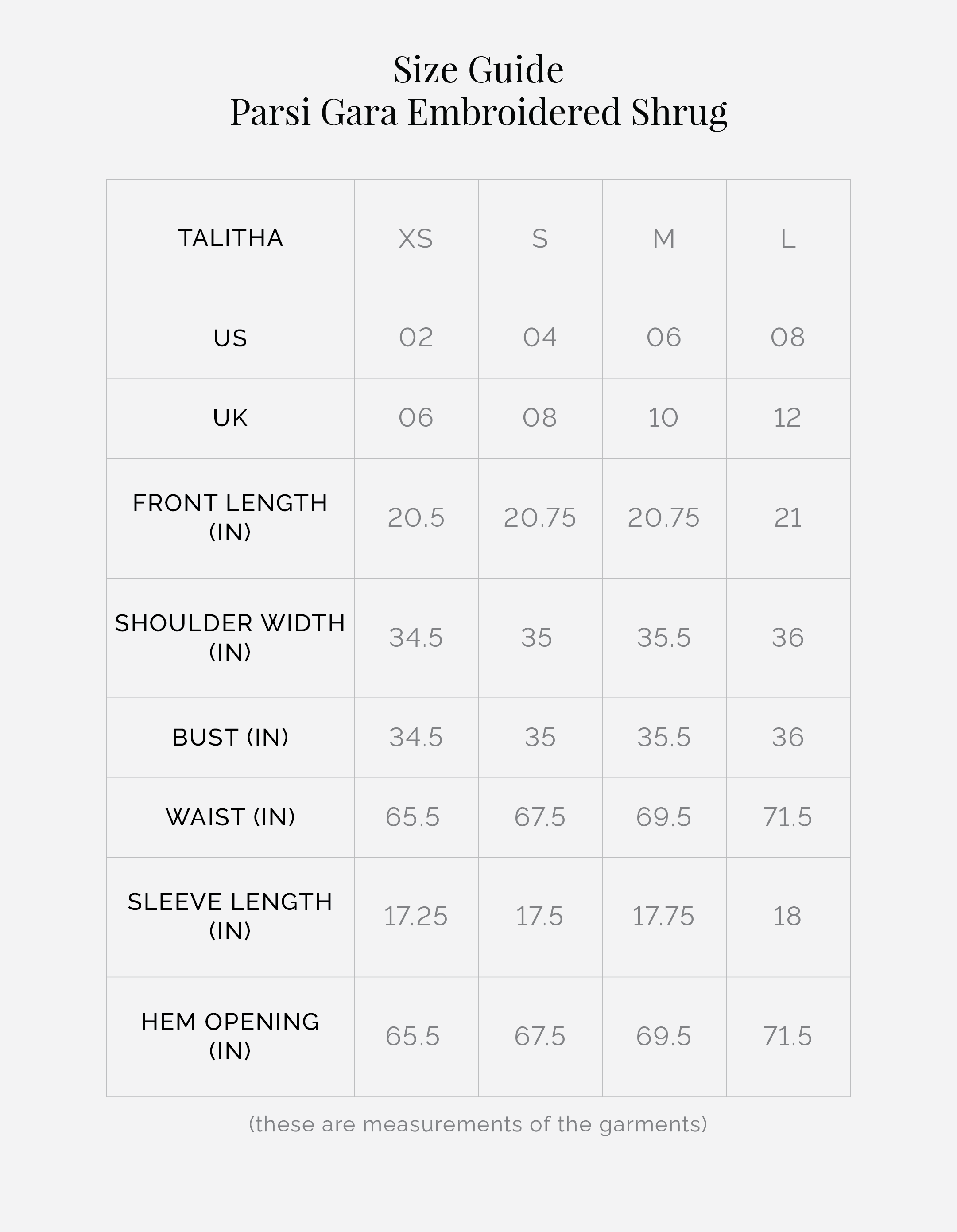 Traditionally seen on Parsi saris, this luxurious silk crepe shrug is adorned with multicoloured Parsi Gara hand embroidery. It also features a generous silk fringe along the hemline, modern French knots, and intricate sui work.