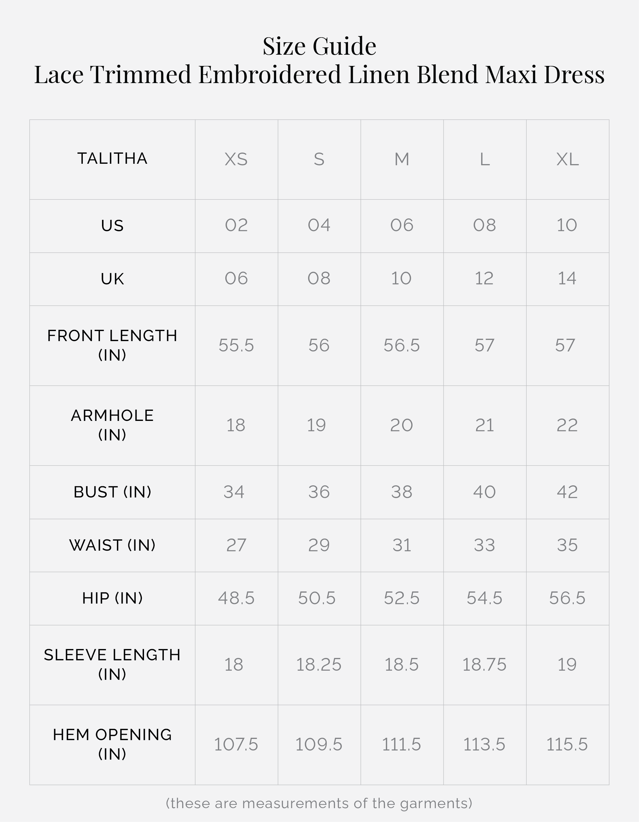 This breezy linen blend dress features a mix of lace inserts and white-on-white embroidery inspired by Indian floral and fauna motifs. Also includes a front-and-back V-shaped neckline with lace and pintucks, a hook-and-eye closure, and a centre-bottom zipper closure.